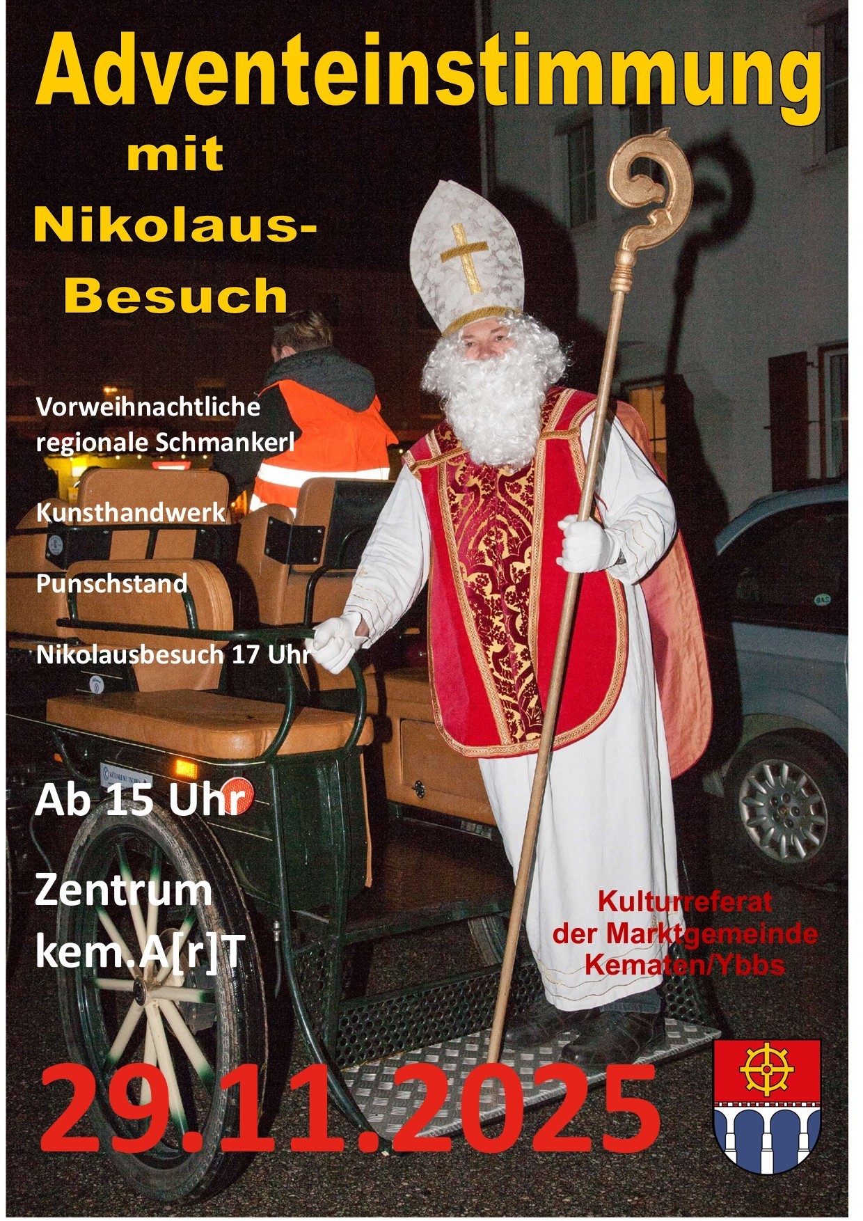 Die Marktgemeinde Kematen/Ybbs lädt herzlich ein zu einer Adventeinstimmung der besonderen Art: Vorweihnachtliche regionale Schmankerln, Kunsthandwerk, Ausschank uvm.
