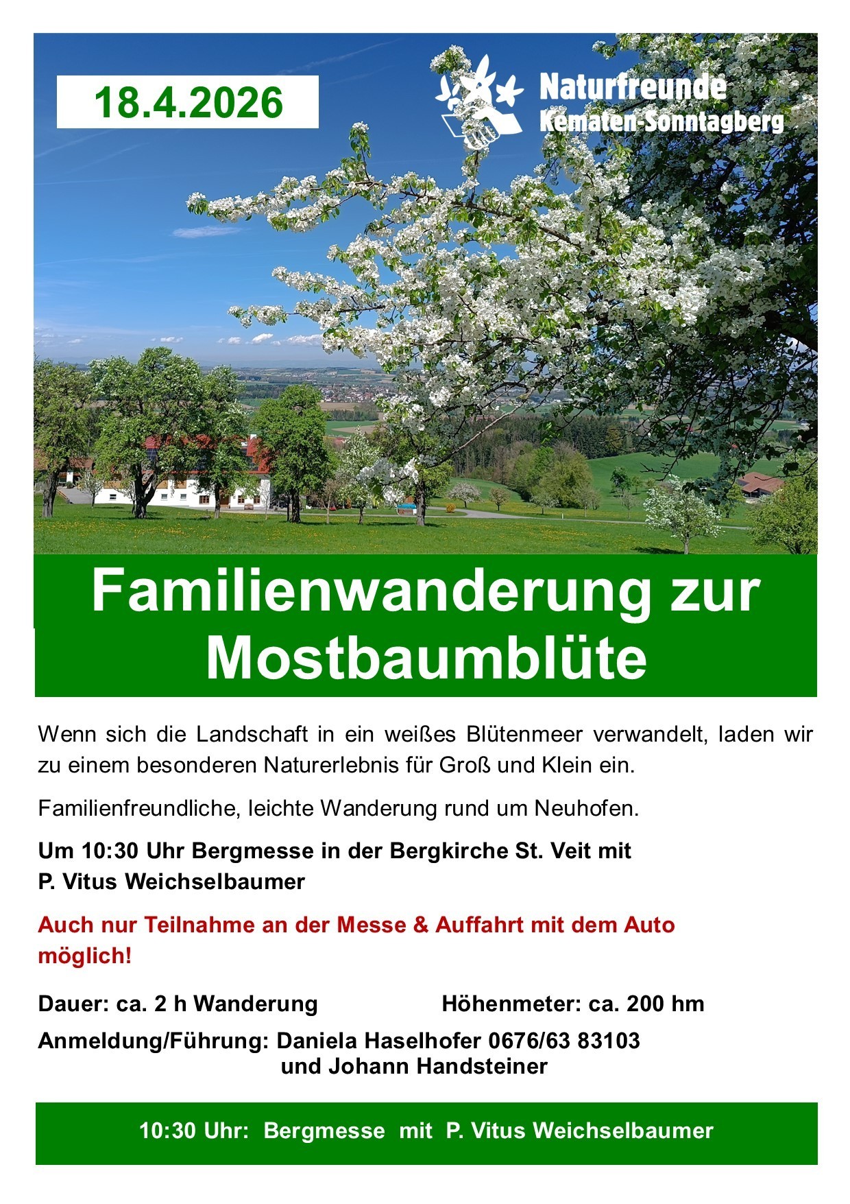 Frühlingserwachen im Mostviertel: Familienwanderung zur Mostbaumblüte mit Bergmesse