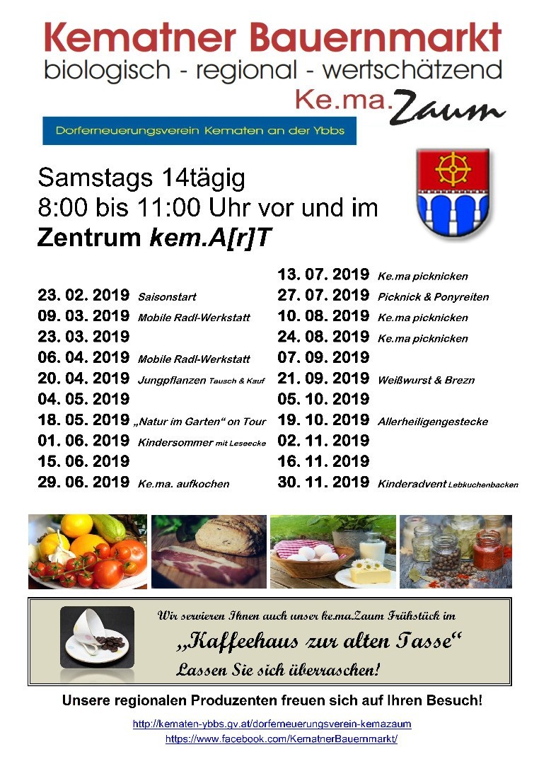 Der Bauernmarkt findet alle zwei Wochen am Marktplatz bzw. im Zentrum kem.A[r]T mit Frühstück im Café zur alten Tasse statt.