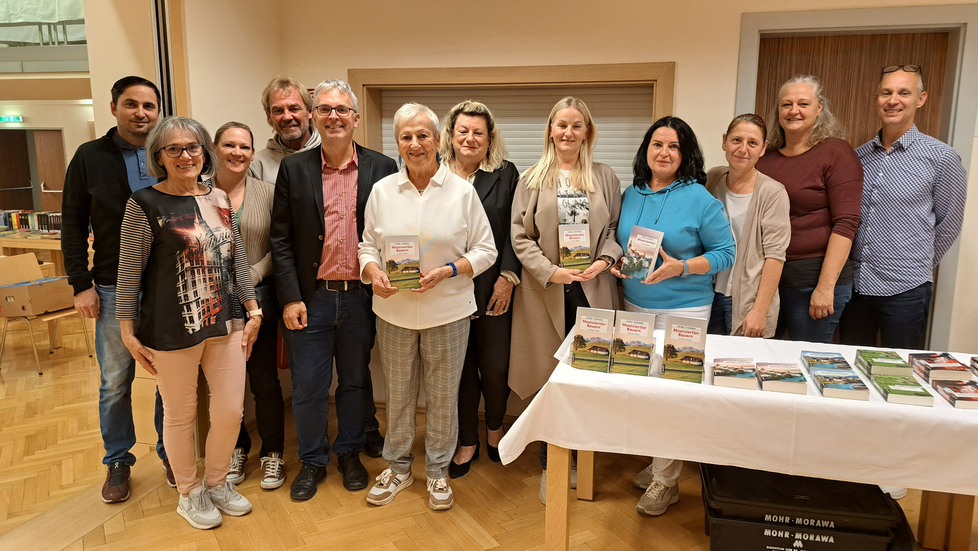 Foto: Helmut Scharner (5vl) beeindruckte die Kematner Genmeindevertreter, das Team der Bücherei sowie Günther Hofer von der Bücherecke Waidhofen