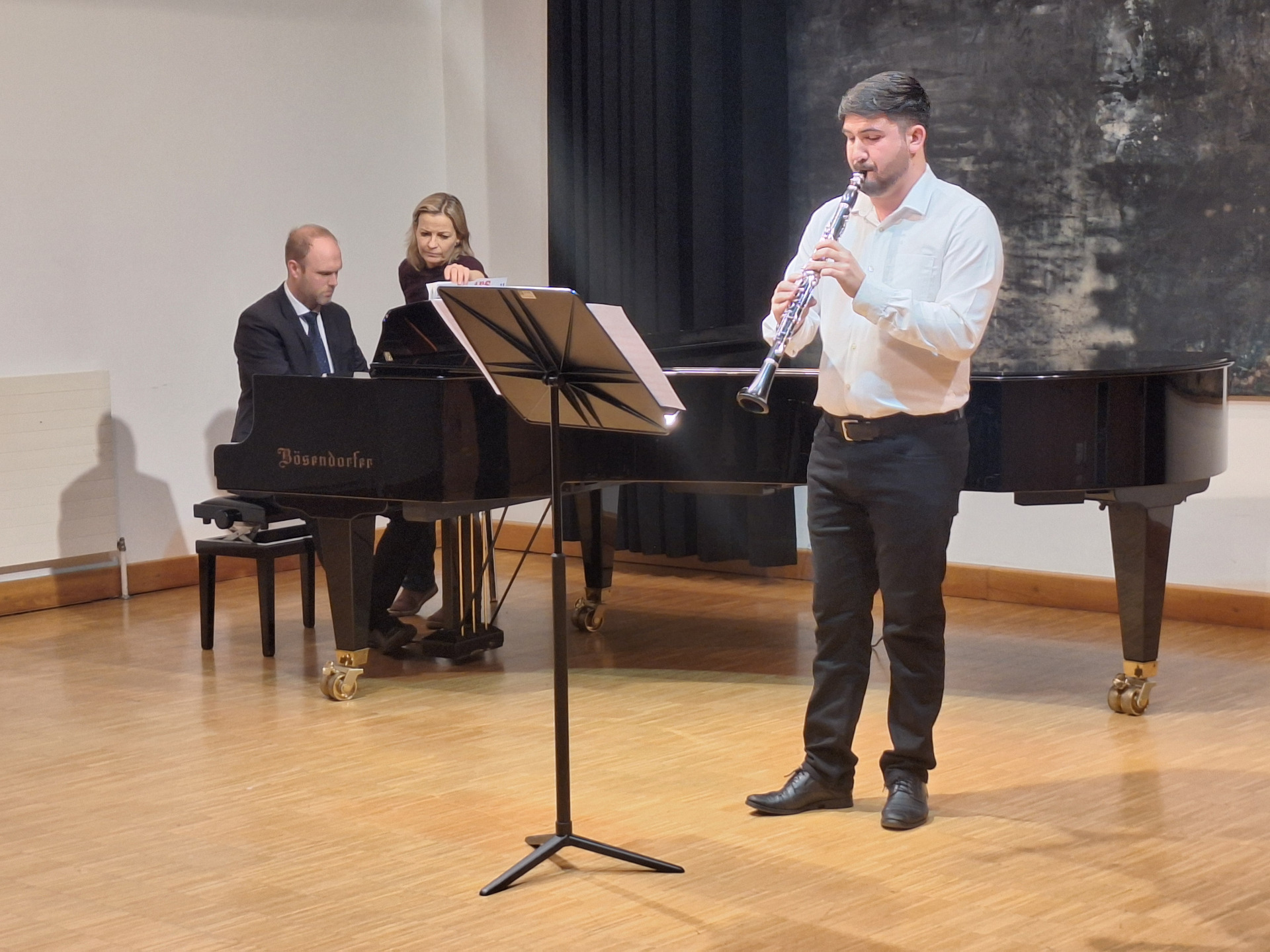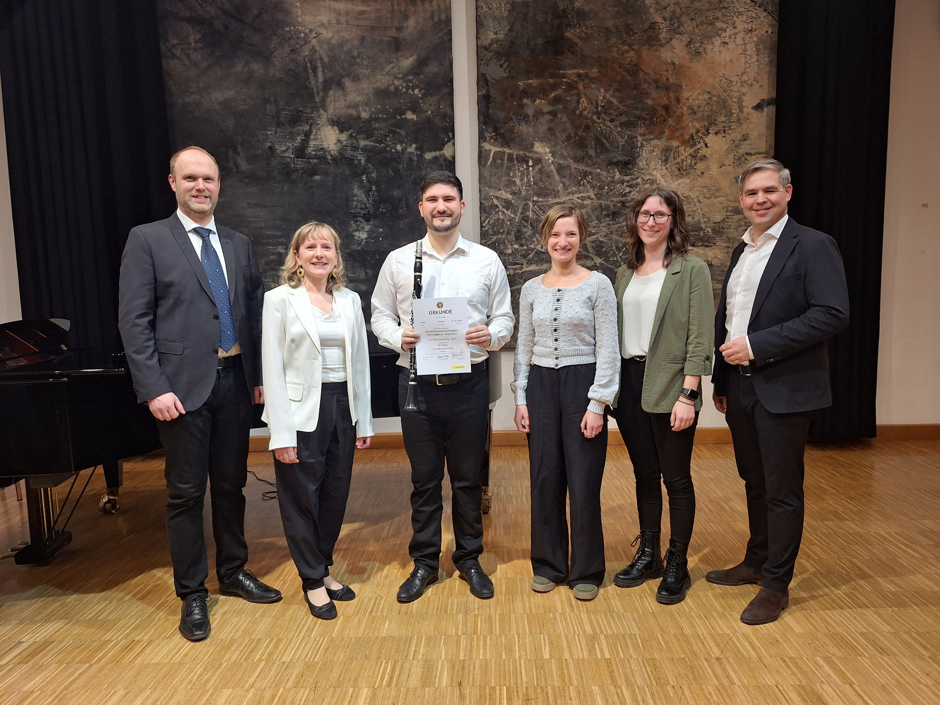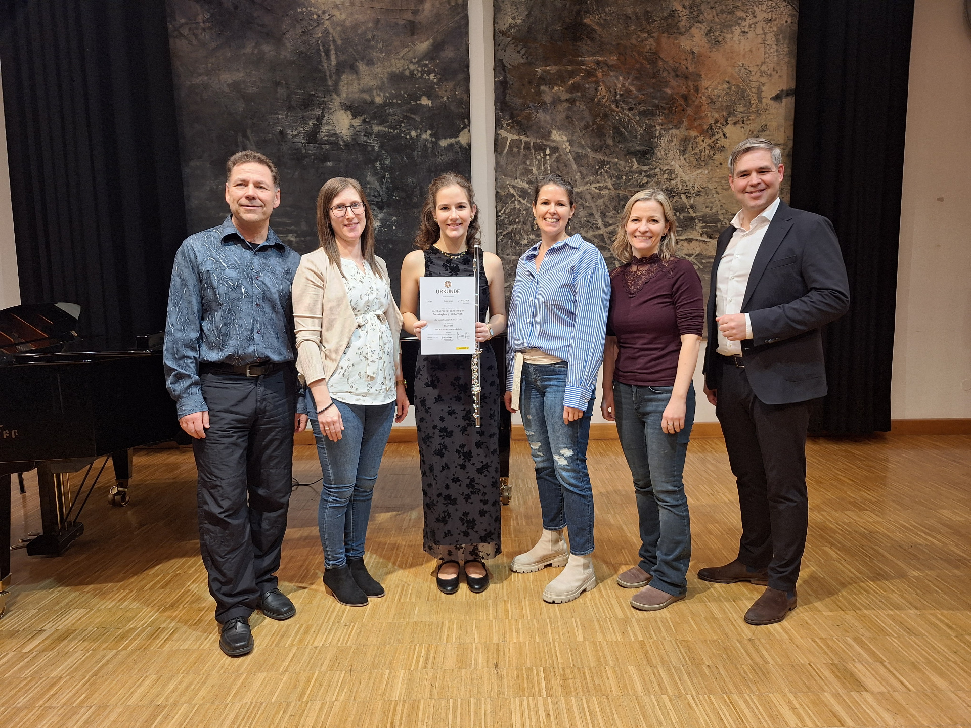 Ein musikalisches Glanzlicht setzte der MSV Region Sonntagberg - Ostarrichi am vergangenen Donnerstag mit seiner feierlichen Goldprüfung. Zahlreiche Besucherinnen und Besucher füllten den Konzertsaal im Ostarrichi Kulturhof bis auf den letzten Platz und erlebten ein abwechslungsreiches Konzert auf höchstem Niveau. Im Mittelpunkt des Abends standen die jungen Musiker:innen Luise Kromoser – Querflöte (Klasse Julia Haimberger M.A.) und Lukas Fellner – Klarinette (Klasse Mag. Christine Putzer), die sich der anspruchsvollen Goldprüfung stellten – der höchsten Leistungsstufe im Rahmen der musikalischen Ausbildung. Mit beeindruckender Technik, musikalischem Feingefühl und großer Bühnenpräsenz zeigten sie, wie intensiv sie sich auf diesen besonderen Moment vorbereitet hatten. Virtuose Läufe, gefühlvolle Passagen und ein ausdrucksstarkes Zusammenspiel mit der Klavierbegleitung von Mag. Robert Jäger und Mag. Peter Putzer machten die Darbietungen zu echten Höhepunkten des Abends. Die beiden jungen Musiker:innen überzeugten sowohl mit klassischen Werken als auch mit modernen Stücken und bewiesen ihre Vielseitigkeit solistisch und auch im Ensemble. Der langanhaltende Applaus am Ende des Konzerts war Ausdruck großer Anerkennung für die erbrachten Leistungen welche die Jury mit einem ausgezeichneten Erfolg für Luise Kromoser und einem sehr guten Erfolg für Lukas Fellner honorierte. Der Leiter des Musikschulverbands Region Sonntagberg – Ostarrichi Hubert Kerschbaumer M.A. freute sich über die musikalische Nachwuchsförderung die hier mit Leidenschaft und Qualität gelebt wird.