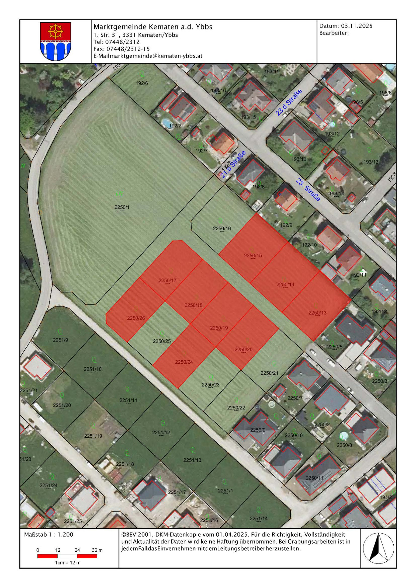 Die Gemeinde bietet Baugrundstücke im Ortszentrum auf den ehem. Mayrhofer Gründen zum Verkauf an. Die Baugründe liegen zwischen der 19. und der 23. Straße und haben eine Fläche von ca. 700-900 m². Es besteht Bauzwang innerhalb von 5 Jahren. Preis pro m²: € 85,-- Weitere Infos am Gemeindeamt unter Tel.: 07448/2312-11.